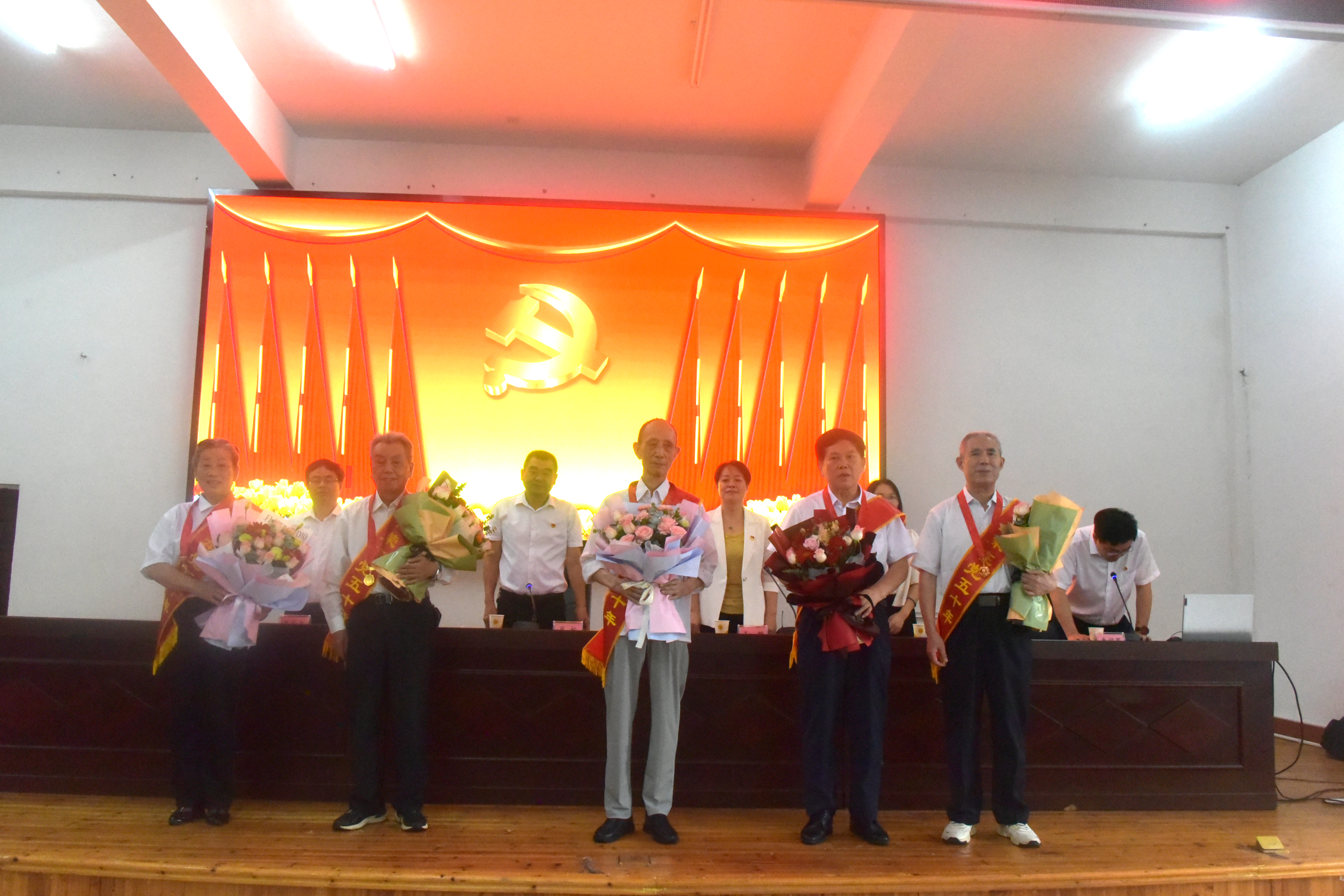 会上,工会常务副主席肖松宣读了关于颁发“光荣在党50年”纪念章和表彰优秀共产党员、优秀党务工作者的文件。20名党龄达到50年、一贯表现良好的老党员受颁“光荣在党50年”纪念章,35名优秀共产党员和10名优秀党务工作者荣获表彰。