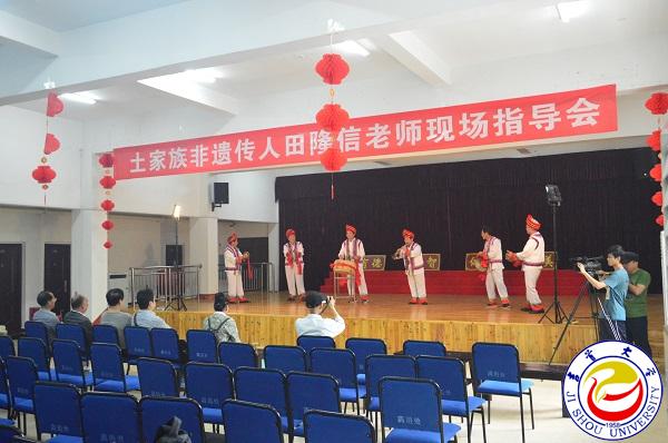 19日上午,田隆信在离退处礼堂指导拍摄了土家族打溜子,对表演中存在的问题、乐器使用、艺术改编等方面进行了指导,并现场打起了钹、敲起了围鼓。下午,田隆信为音乐舞蹈学院的学生带来了一场主题为“从山野走向世界的土家族音乐艺术”的讲座,并对学生学习土家族器乐进行了指导。