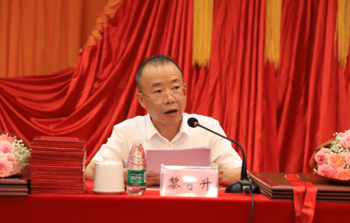 本网讯(通讯员 徐备 张国蓉 杨美琳)6月29日下午,我校在砂子坳校区第六教学楼二楼会议厅隆重举行庆祝中国共产党成立102周年暨“七一”表彰大会。学校党政领导、二级党组织书记、机关教辅单位主要负责人、新老党代表和受表彰对象代表欢聚一堂,共庆党的生日。校党委书记廖志坤在会上讲话,校党委副书记、校长黎奇升主持大会。