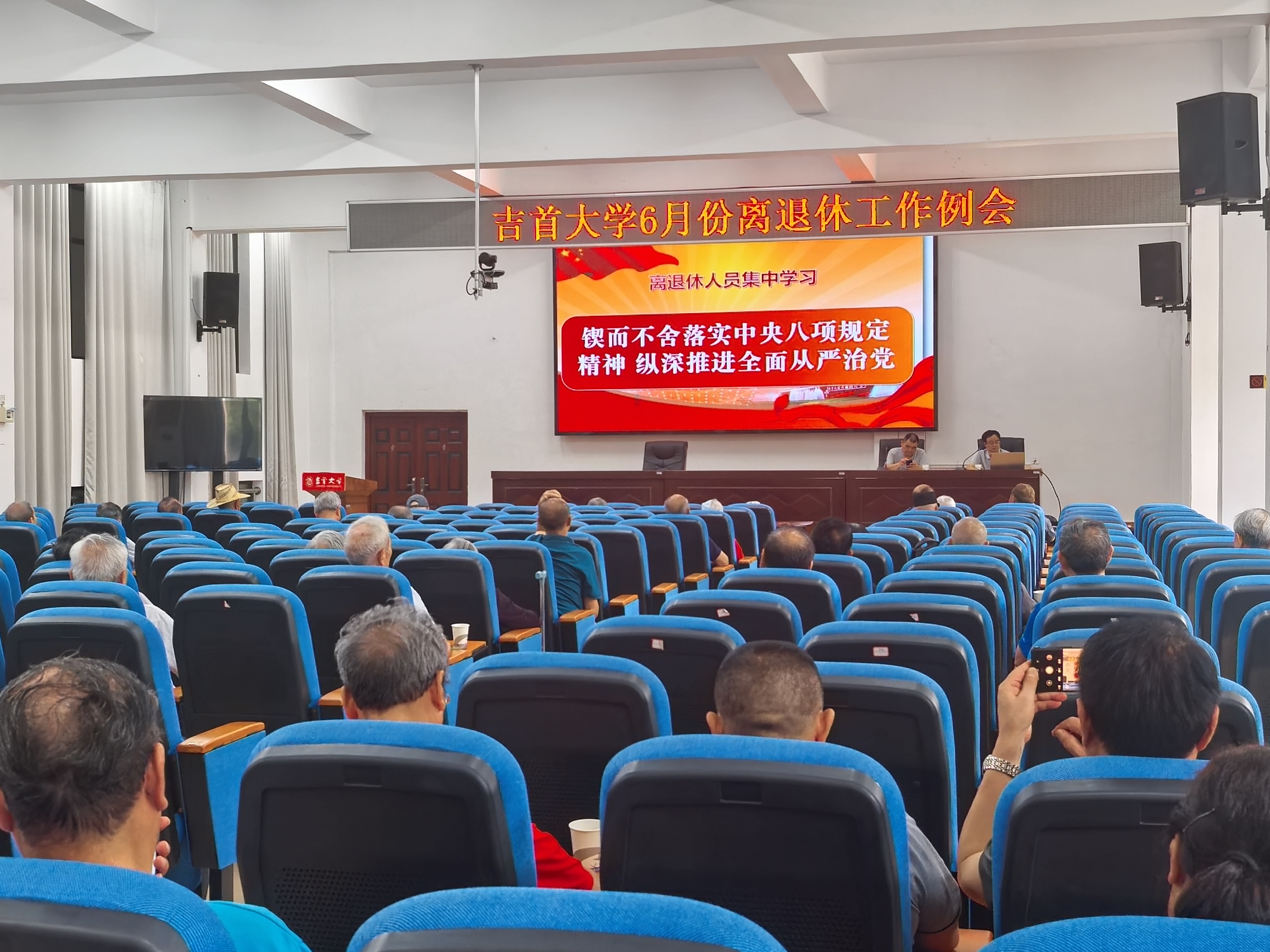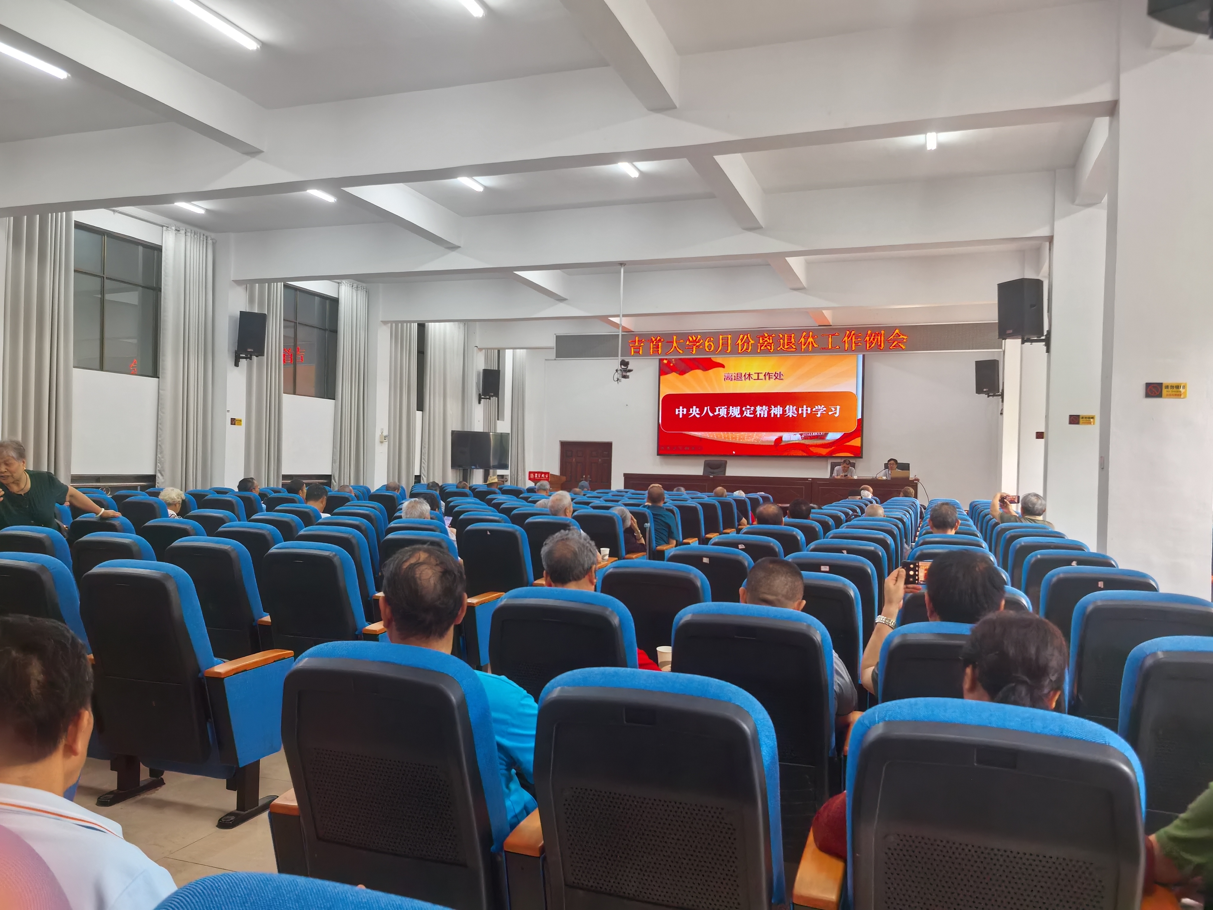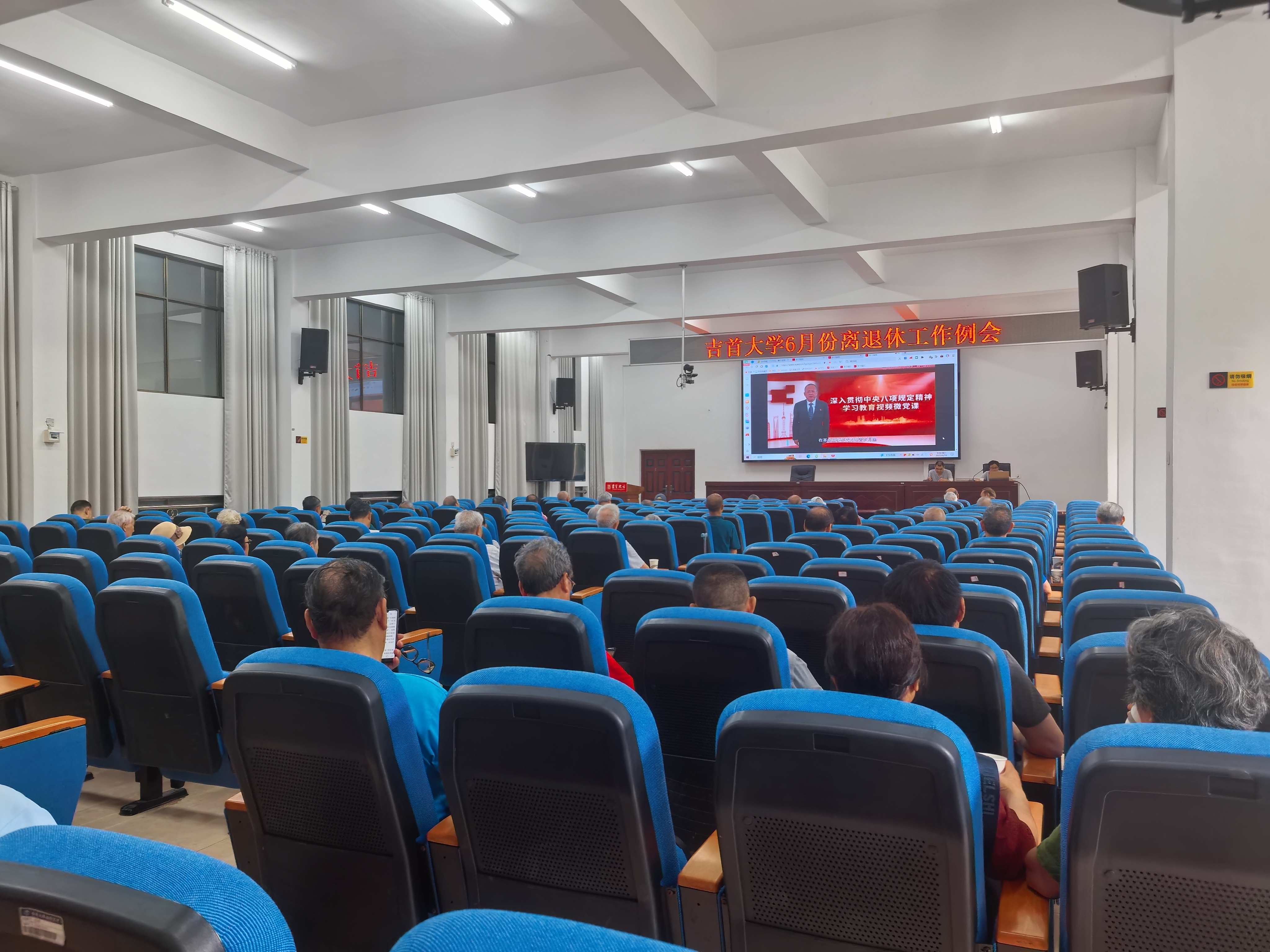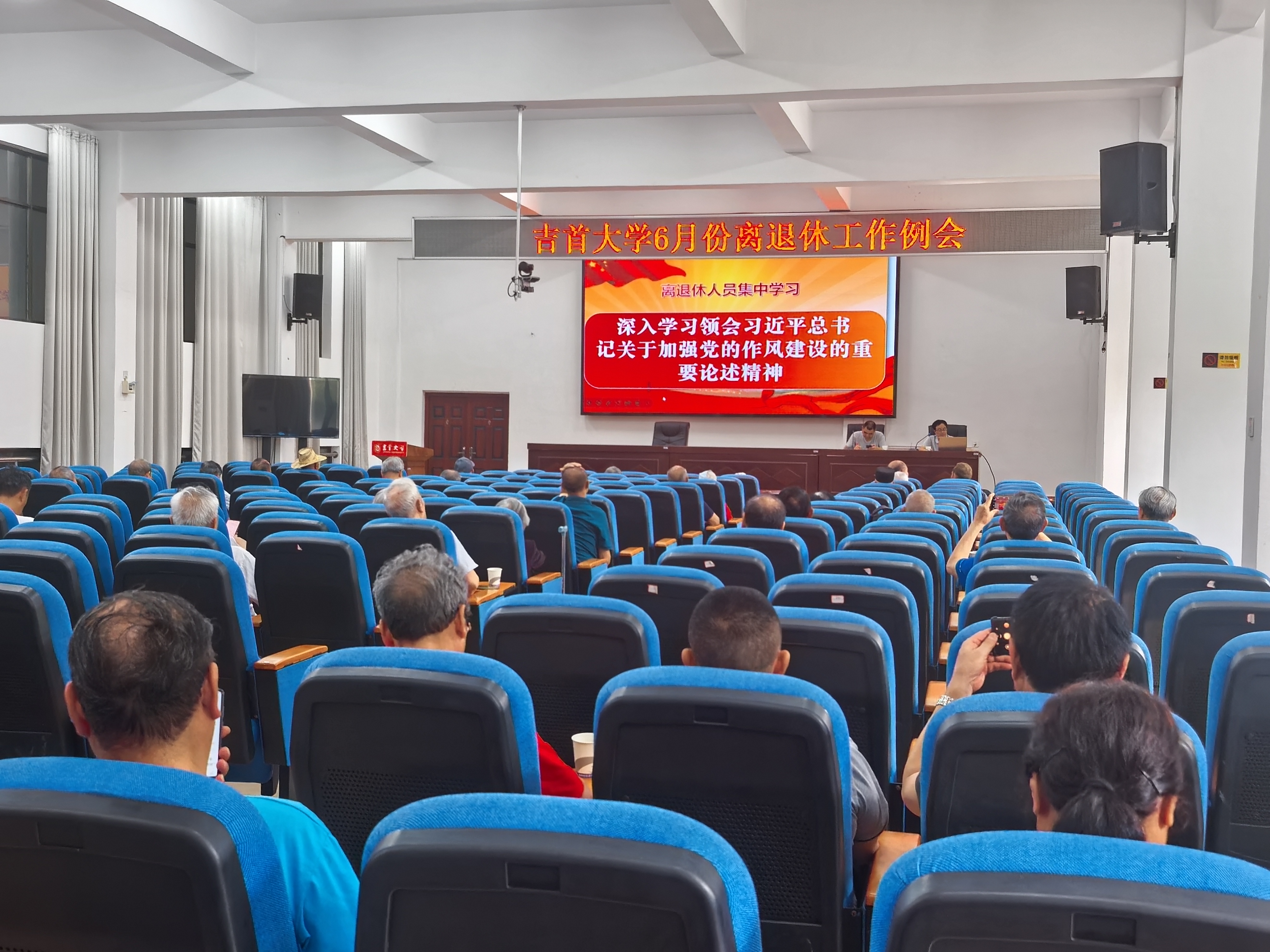 2025年6月18日上午,我处组织离退休人员和在职人员在教职工活动中心309会议室召开6月份离退休工作例会,集中开展政治理论学习和部署安排有关工作。会议由离退休工作处副处长梁高永同志主持。