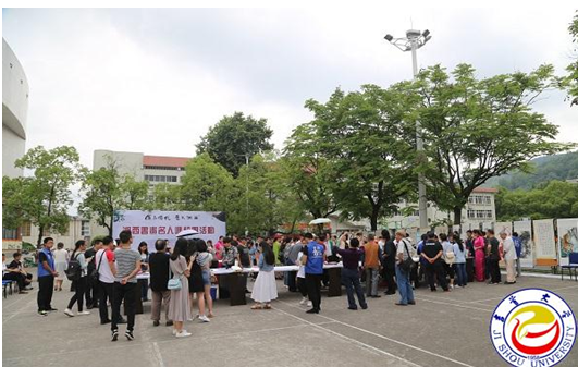 5月20日,新吉大体育馆前,翰墨飘香,名家荟萃,我处和州老书协、州文联等单位及学校相关部门举办的“传承传统 爱我湘西”湘西书画名人进校园活动在这里隆重举行。湘西州人大原副主任、州老年书画协会会长彭司礼,湘西州文联副主席罗应奉,我校副校长龙先琼及相关职能部门负责人,湘西著名书画家林时九、毛光辉、王焕林,我校97岁高龄的书家彭秀模先生等与广大书法爱好者欢聚一堂,传播优秀传统文化,共赏书画艺术瑰宝。
