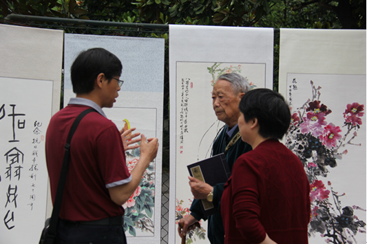 老年诗词书画摄影学会顾问、97岁的书家彭秀模,学会会员舒湘汉、向鸣坤、马根深等都来到了活动现场,有的参与献艺,有的学习、欣赏作品,有的和书画名家交流,收获颇多。