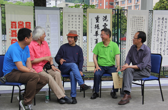 图为校领导和知名画家毛光辉先生等现场交流