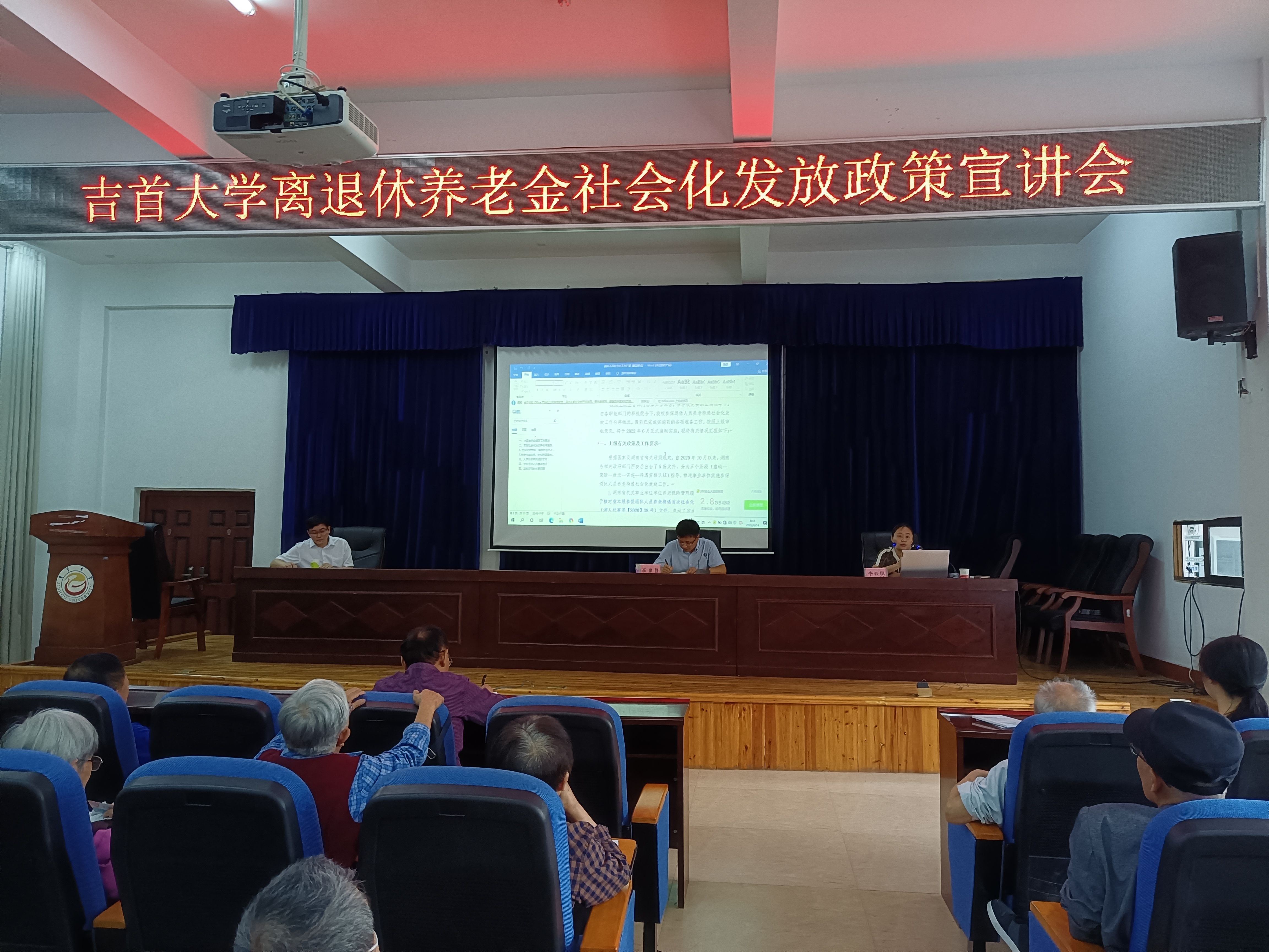 (离退休工作处)为切实做好学校离退休人员养老金社会化发放工作,6月14日上午,学校人事处处长李建锋和副处长李亚男一行到离退休工作处召开会议,专题宣讲养老金社会化发放有关政策。会议由离退处处长朱福军主持,吉首校区老同志参加。