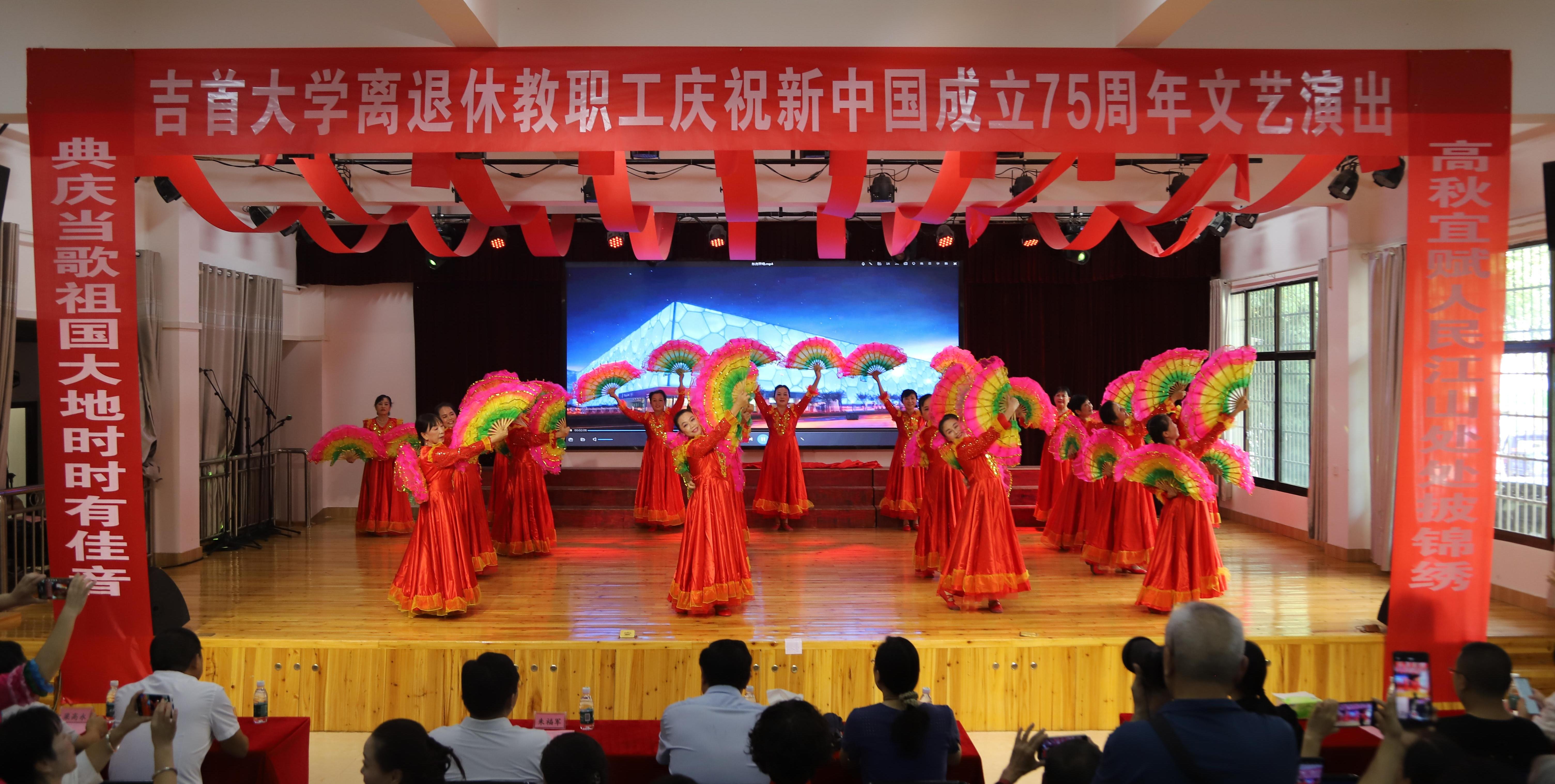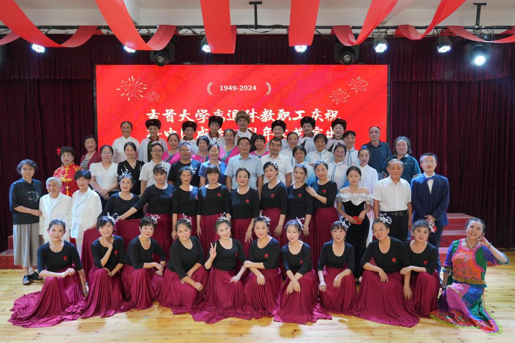 9月27日下午,为庆祝新中国成立75周年,由我校离退休工作处、校工会主办的离退休教职工庆祝新中国成立75周年文艺演出,在砂子坳校区老年活动中心举行。