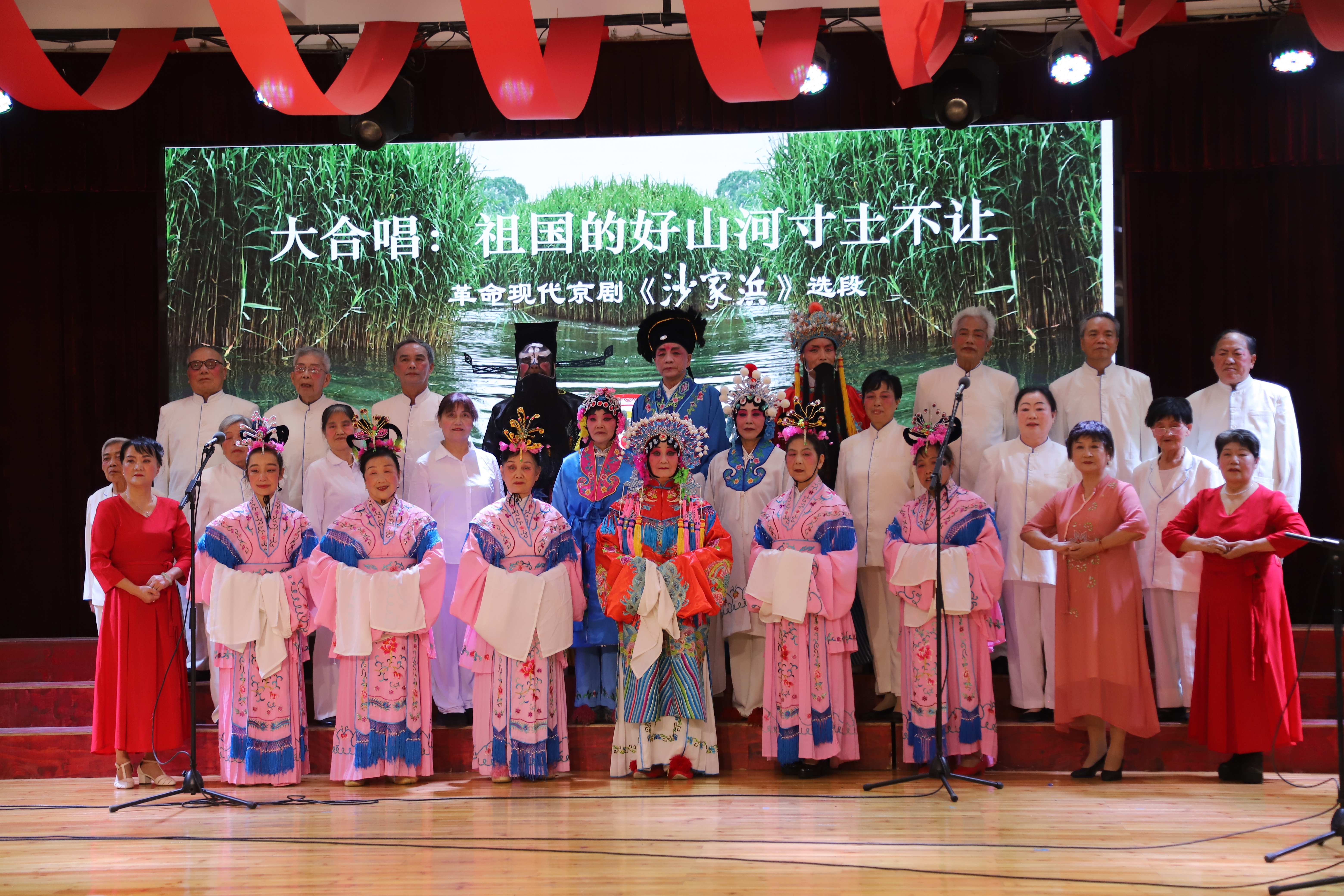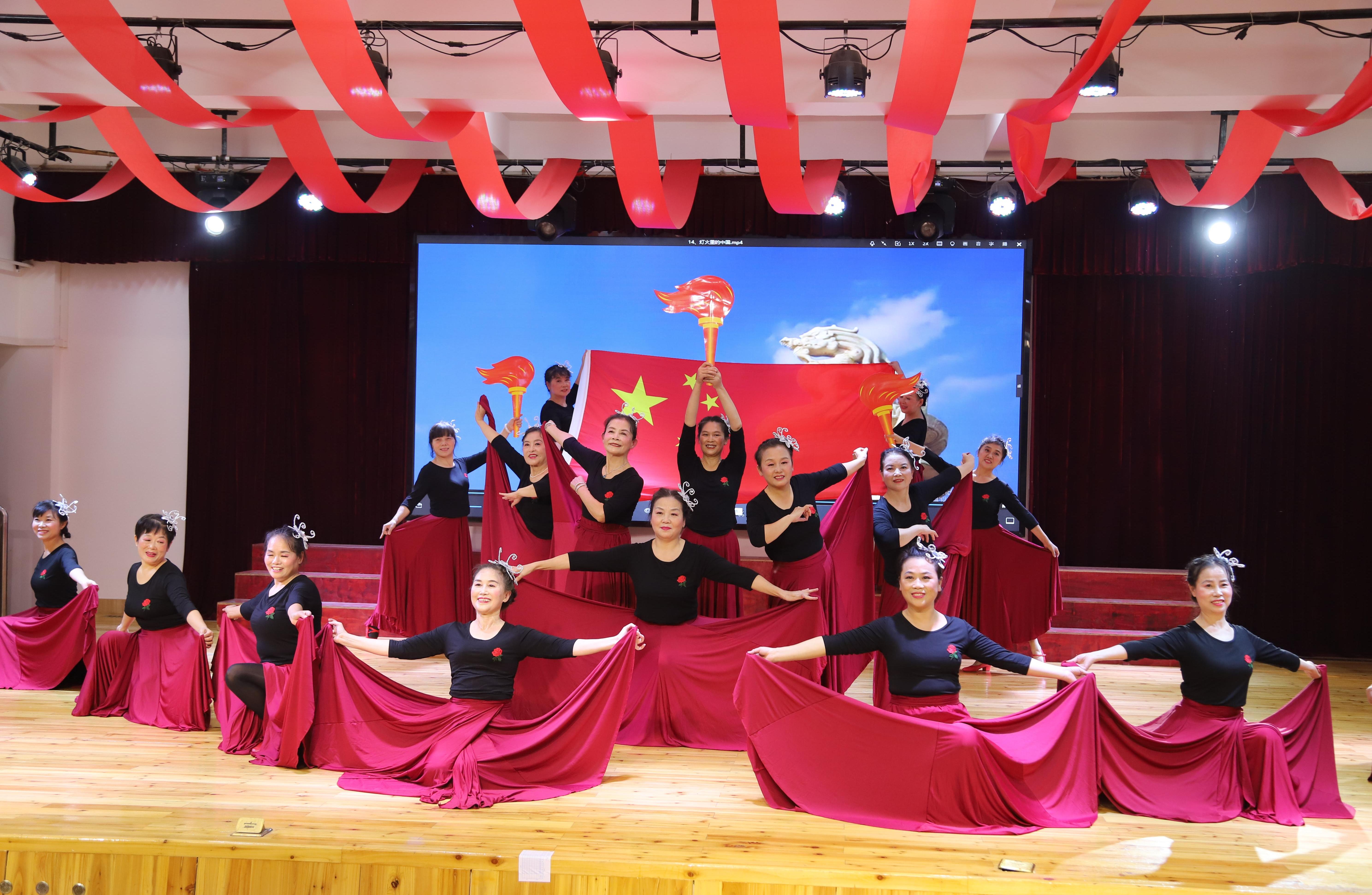 老年大学合唱团激情澎湃的开场舞《东方红》,把演出现场的热烈气氛充分调动了起来,合唱团的《祝福祖国》、太极协会的《中华情》、舞蹈班的《军人的本色》、京剧班的《荷花赋》、藏舞《次仁拉索》、诗朗诵《沁园春·雪》等形式多样的精彩节目轮番上演,现场歌声婉转,舞姿蹁跹,最后在《灯火里的中国》舞蹈中落下帷幕。