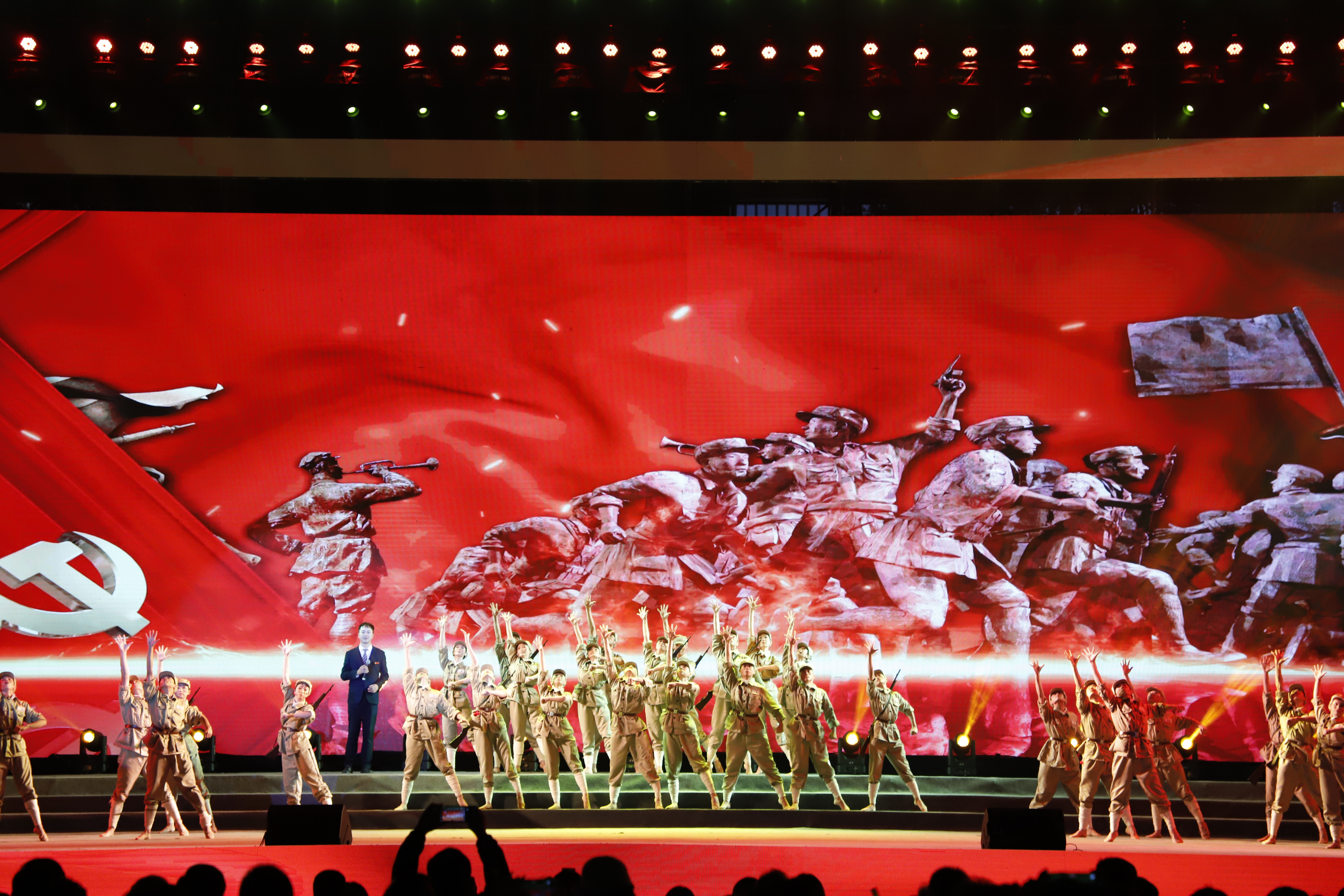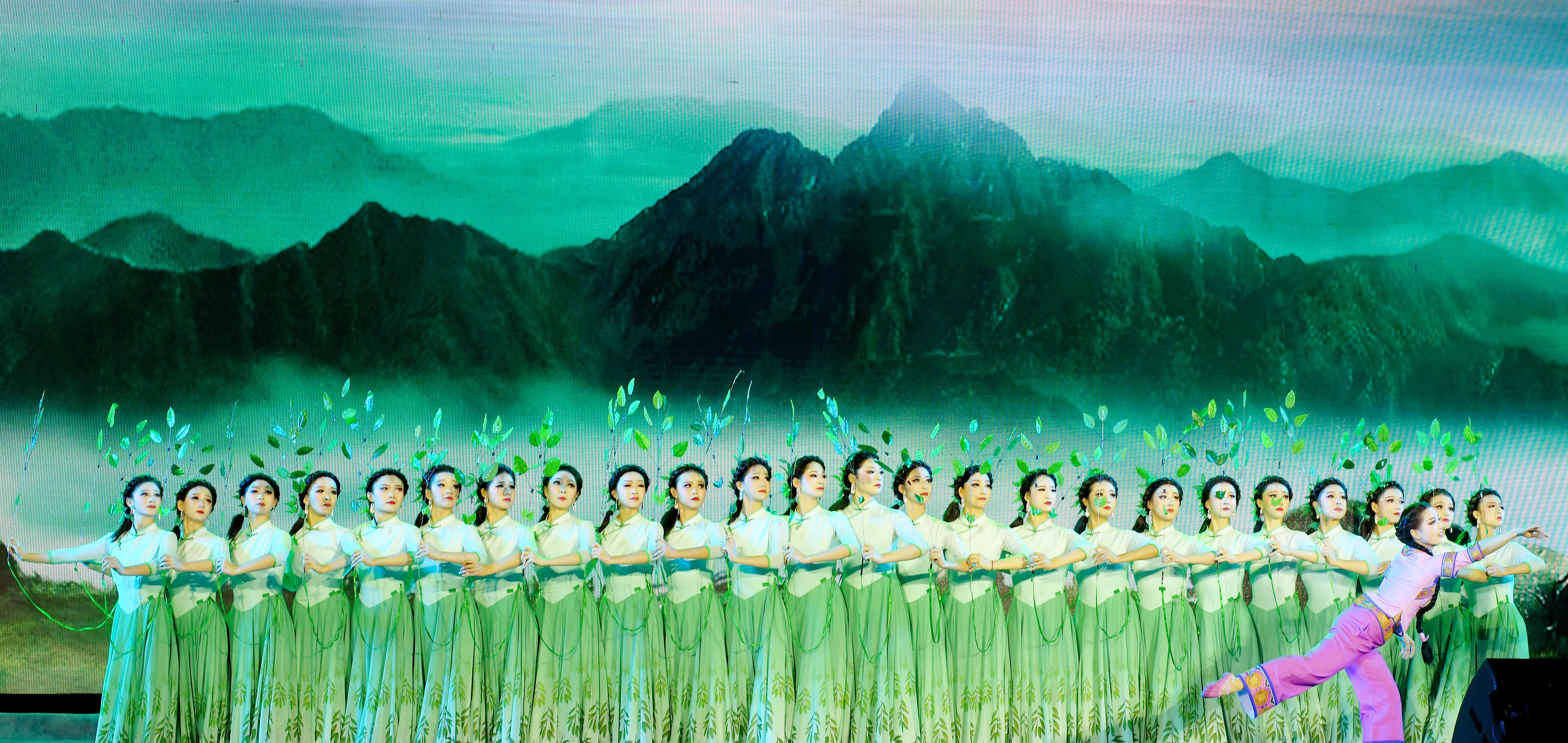 薪火相传篇。音乐剧《英雄赞歌》,讲述了祖国的英雄儿女们投身抗美援朝战争,历尽艰险最终取得胜利的感人故事,可谓波澜壮阔、荡气回肠。古筝重奏《战台风》,鼓点强劲,气势磅礴,透出“人定胜天”的豪迈气势。歌曲《一颗心儿向着您》,情感真挚浓烈,旋律优美高亢,表达出对党和祖国的深深爱意。原创舞蹈《马桑树儿搭灯台》,荡漾着民族风情的芬芳,也蕴含着苏区人民攻坚克难的奋斗意志。在校教师原创词曲《武陵文渊》,歌词温馨唯美,旋律悠扬。“顶天立地五百年,两地三区谱新篇。总理之言在耳边,呵,这里是武陵文渊。”移步易景,校园风光似在眼前,动人情谊犹在耳边,65年来我校师生戮力同心,扎根武陵,服务大湘西的动人场景,在老师们的激情演唱下犹如画卷般徐徐展现在我们眼前。