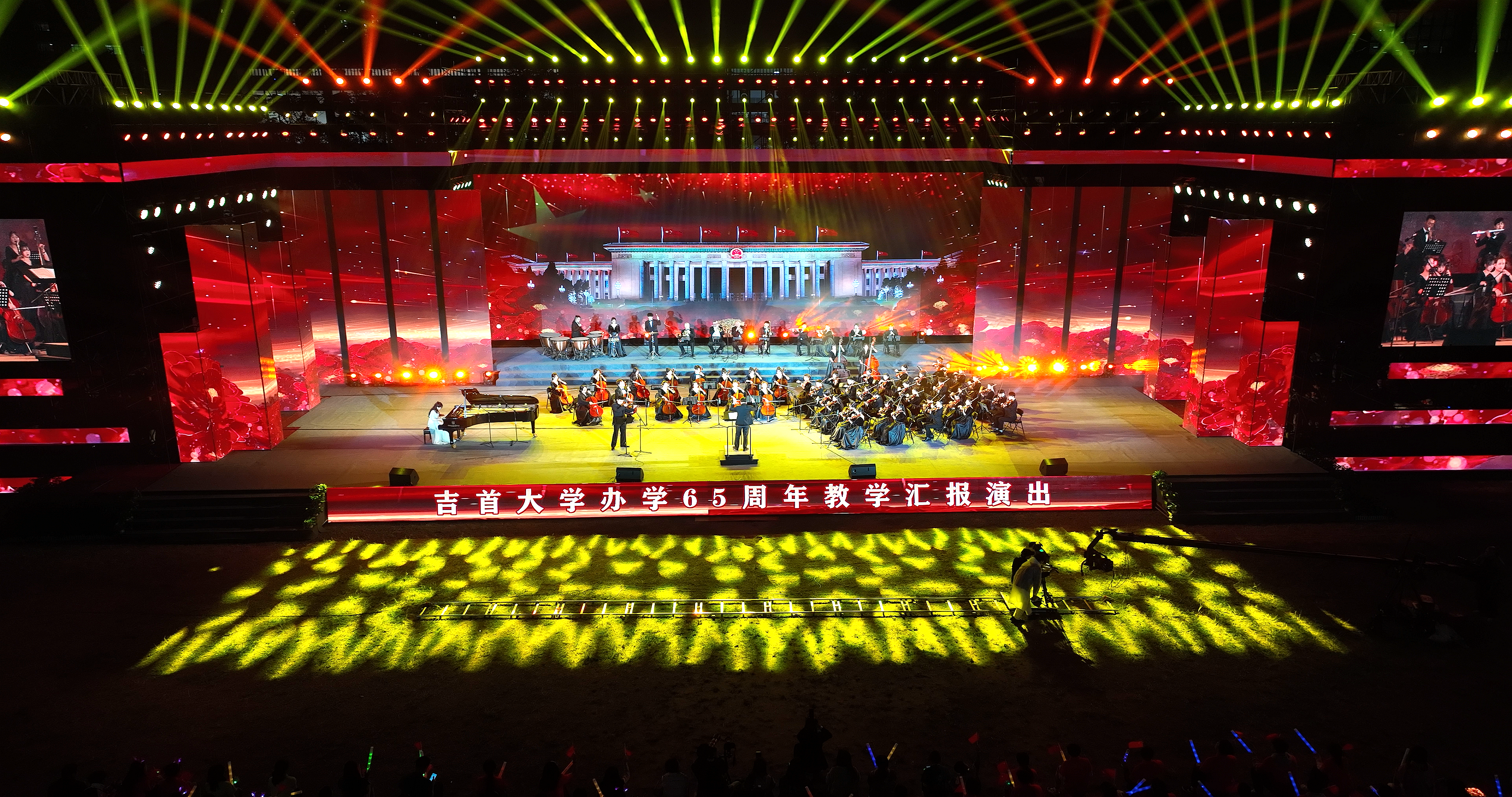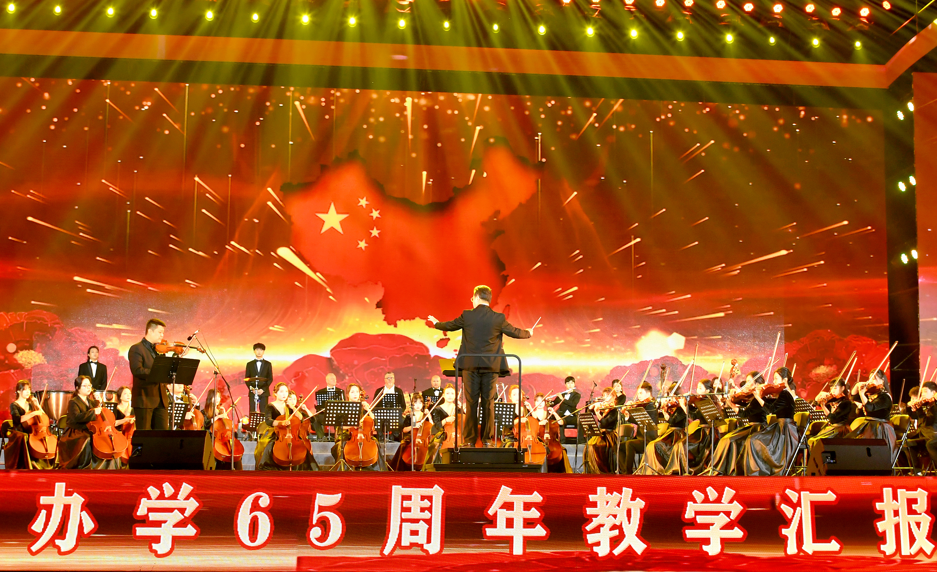 汇演在协奏曲《我的祖国》的悠扬旋律中缓缓拉开序幕,共分为“岁月峥嵘”“薪火相传”“再谱华章”三个篇章,呼应了学校办学65载来筚路蓝缕、艰苦奋斗的光辉历史。