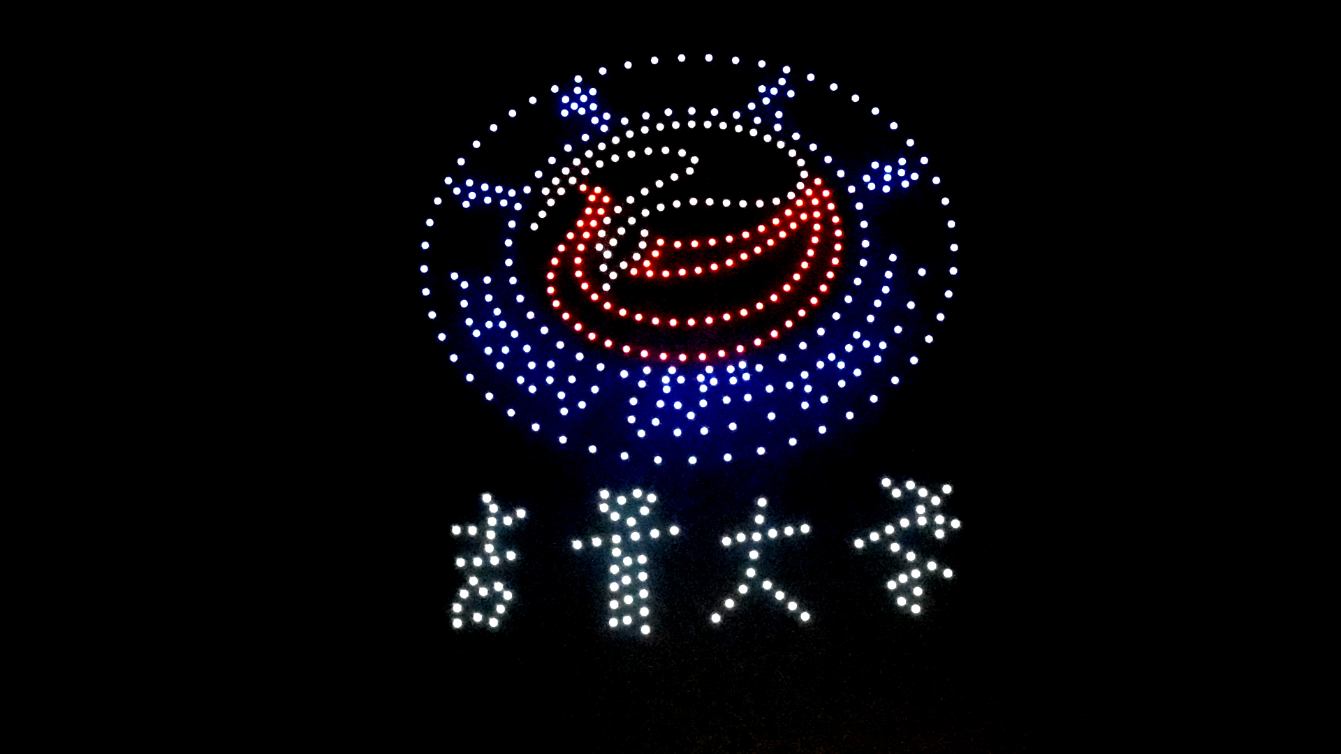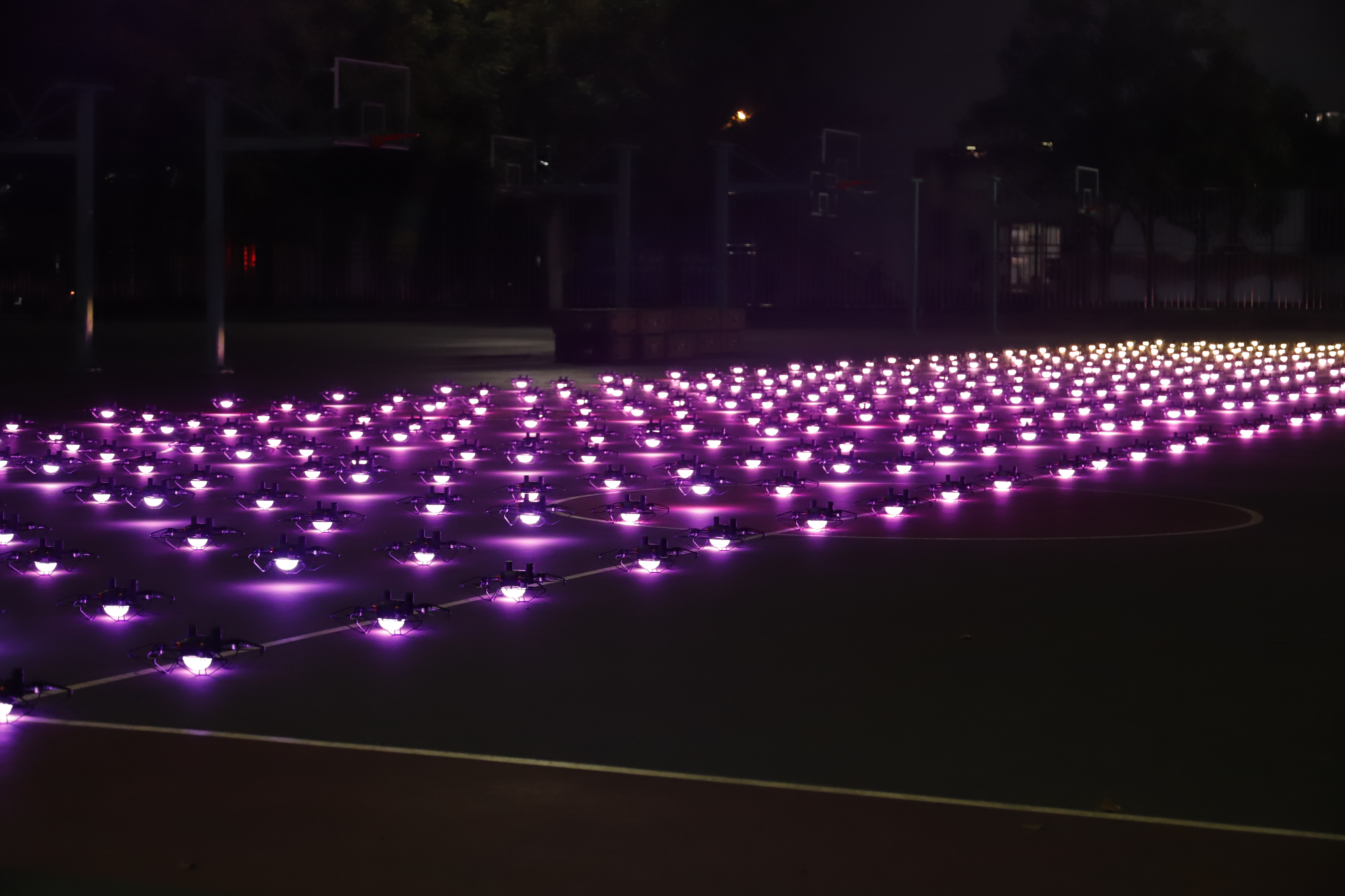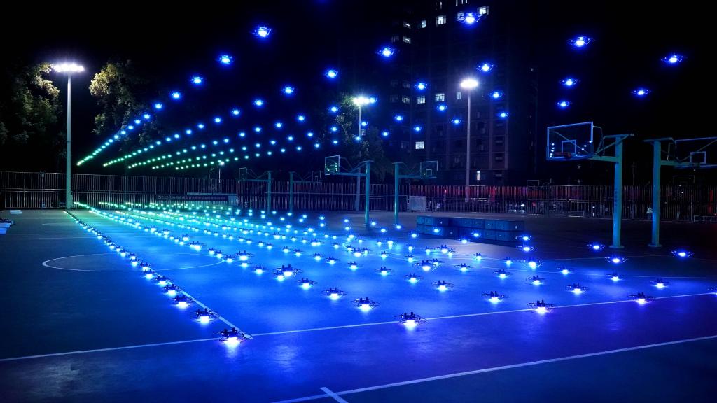 汇演开始前,500架无人机组成方阵,在夜空中跃然起飞,色彩不断变化,宛如繁星点点。排列出“以人名校 以业报国”“凤飞千仞 薪传八方”“办学65周年 吉大大吉”、william威廉英国官网校徽等图案。最后,一只巨大的火凤凰化作八朵星火,薪传八方,象征我校学子坚韧不拔、昂扬进取之珍贵精神。