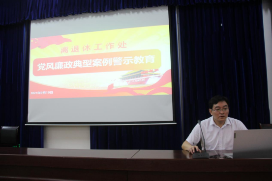 9月10日上午,离退休老同志和在职人员在老年活动中心309会议室召开会议,开展违纪违法典型案例警示教育,处党委书记伍孝成同志主持会议。