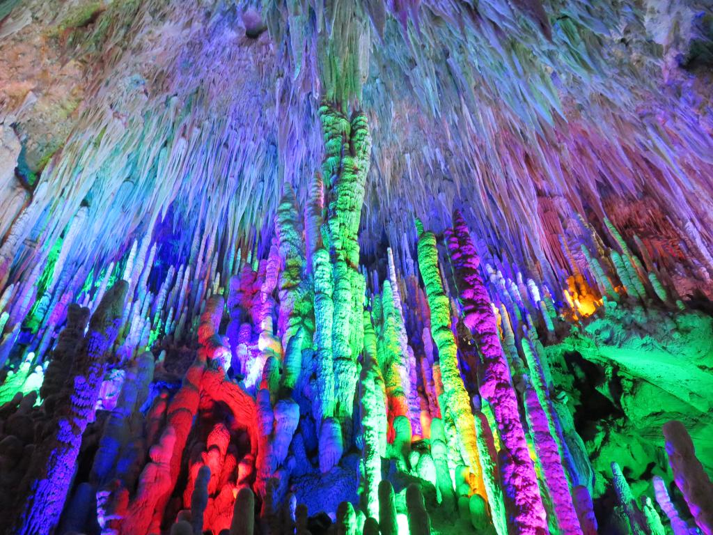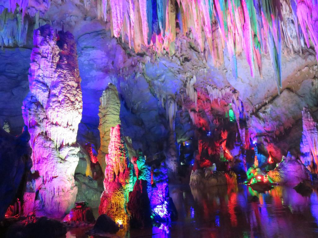 经过三个多小时车程,我们到达了此次春游的第一个景点——潜龙洞。潜龙洞位于贵州省松桃县境西部乌罗镇境内,其海拔1300米,是武陵山脉最高海拔的古溶洞群,也是几十亿年前罕见的生长于白云岩石层中的古溶洞群,洞中冰花玉柱,飞瀑悬挂,流水潺潺,石笋密度居亚洲第一,被法国洞穴专家誉为“地下桂林”。跟着导游,我们鱼贯进入洞内,越过百米宽敞雄伟的洞门,眼前豁然开朗,映入眼帘的是该洞最大的可供万人聚会的潜龙大厅,面积1万余平方米的潜龙厅内石笋林立,石幔由天而降,百态千姿,形象万千,气势磅礴,厅中有一巨大石柱斜插洞顶,神奇至极,洞壁有企鹅、青蛙、石象等惟妙惟肖的壁画,让人目不暇接。跟着洞内潺潺的流水,我们进入潜龙宫、一路观赏八百米河西走廊、洞中西湖潜龙天池、潜龙泉、潜龙殿、潜龙瀑、潜龙柱、南极冰天,真可以称得上一步一景,景景如画,从顶上往下低垂的钟乳石色泽夺目,光华四溢,令人遐想,看那"冰柱"悬垂,"白雪"皑皑,"玉竹"成片,"玉树"成林,"玉笋"出土,"玉花"盛开,"银瀑飞泻"。厅中一朵莲花,悬挂于绝壁之上,使人不得不惊叹大自然的鬼斧神工。观景途中,老同志纷纷称赞这是他们有生以来见过的最壮观、最漂亮的溶洞,有的还直呼不过瘾,下次一定带着家人再来。