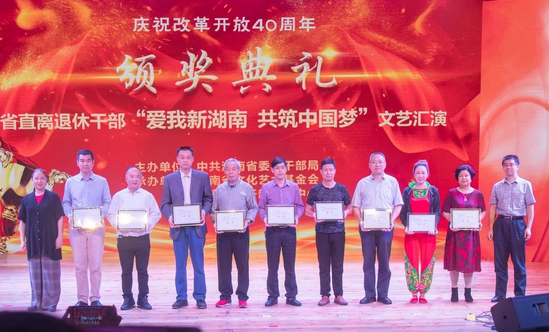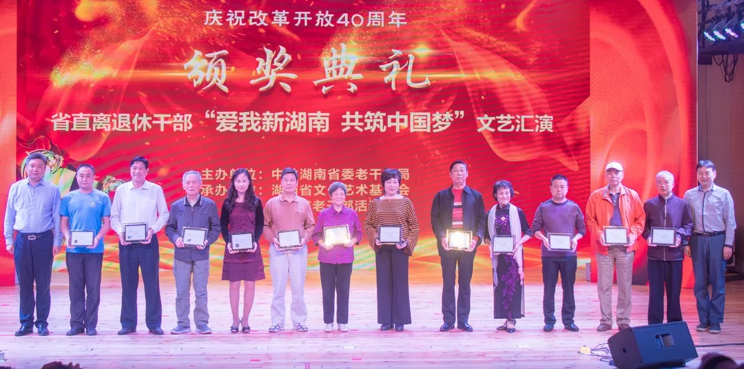 为纪念改革开放40周年,展示新时期广大离退休干部昂扬向上、多姿多彩的时代风采,由中共湖南省委老干部局主办的省直离退休干部“爱我新湖南·共筑中国梦”文艺汇演暨颁奖典礼于9月28日上午在湖南省老干部活动中心金秋大礼堂精彩上演。