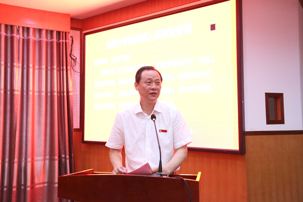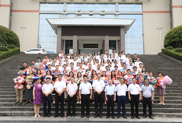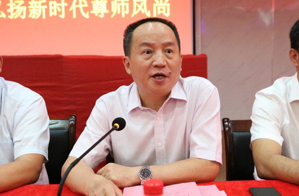校党委书记、校长白晋湘讲话。他代表学校党委、行政向一直以来辛勤耕耘在教学、科研、管理、服务一线的广大教职员工表示最诚挚的慰问,向关心学校建设发展的各位离退休老同志致以最崇高的敬意,向受到表彰的“从教三十年”的优秀教师,以及“大汉奖教基金优秀教师”表示热烈的祝贺。他结合“不忘初心、牢记使命”主题教育、全国教育大会精神提出三点希望:一是希望教职员工始终牢记育人使命。他说,教职员工要用好课堂讲坛,用好校园阵地,用自己的行动倡导社会主义核心价值观,用自己的学识、阅历、经验点燃学生对真善美的向往,增强学生的价值判断能力、价值选择能力、价值塑造能力,引导学生铸就理想信念、掌握丰富知识、锤炼高尚品格;二是希望教职员工始终坚持以德立身。他说,人无德不以立,师无德不以教。全体教职员工要坚持以德立学、以德施教,坚持教育者先受教育。想把学生培养成什么样的人,自己首先应该成为什么样的人。要求学生做到的自己率先做到,自觉坚守精神家园、坚守人格底线,成为学生做人的镜子,以身作则、率先垂范,以高尚的人格魅力赢得学生敬仰,以模范的言行举止为学生树立榜样,把真善美的种子不断播撒到学生心中,让学生真正“亲其师、信其道”;三是希望教职员工始终不断提升学养。他说,学生往往可以原谅老师的严苛,但不能原谅老师的学识浅薄。他强调,全体教师要时刻保持知识危机感和本领恐慌感,把自觉学习、全面学习、终身学习作为一种责任和义务,始终处于学习状态,不断提高治学治教的能力,积极推动人才培养方式改革创新,积极主动关注、参与重大学术课题研究,站在知识发展前沿,刻苦钻研、严谨笃学,不断充实、拓展、提高自己,做到传道者自己先悟道,授业者自己先精业,解惑者自己先无惑。最后,他还希望,广大的教育工作者能够坚持将以生为本贯穿到每个工作环节,尊重学生、理解学生、宽容学生,与学生更近一些,对学生更熟悉一些,让学生更信任一些,用真诚、真心、真情,共同支撑起这份用心灵陪伴心灵、用青春点燃青春、用梦想照亮梦想的事业。