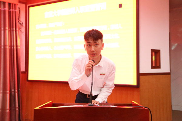 学生代表贾悦同学发言。他代表全校学生为全体教师送来了节日的祝福,并表示被教师们不忘初心、传递薪火的精神深深感动,为学校发展取得的成绩感到骄傲和自豪。