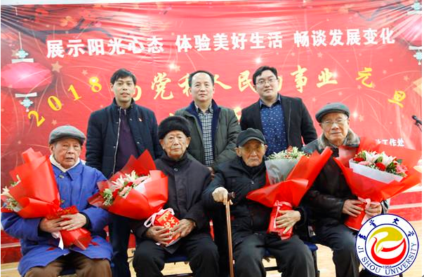 钟海平致辞。他代表学校党委、行政向各位老同志致以节日的问候和良好的祝愿,并简要汇报了学校2017年的三件大事:一是顺利通过了教育部本科教学工作审核评估;二是顺利成为了湖南省唯一推荐到国家参加博士学位授予单位评选学校;三是学校正式成为国家民委与湖南省人民政府共建高校。他表示,学校党委、行政会一如既往做好老干部工作,落实中央、省委的政策与方针,真正做到政治上尊重老同志,思想上关心老同志,生活上照顾老同志。钟海平希望各位老同志继续发挥余热,共同支持、监督、见证学校的发展。