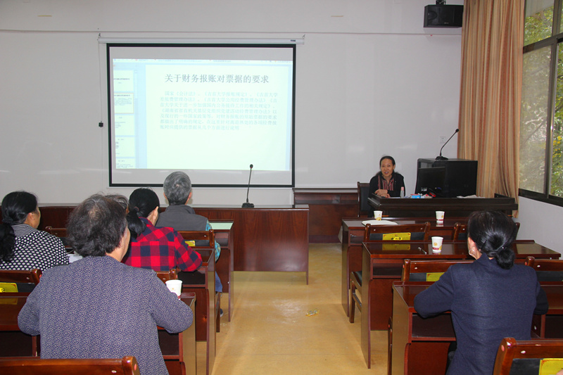 会上,学校财务处财务科科长符梅花同志围绕有关财务政策制度,结合离退休处的经费项目、经费项目的开支范围、报账时需提供的票据和票据的种类及要求等方面展开宣讲。
