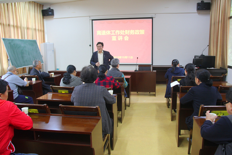 (离退休工作处)为进一步加强党风廉政建设,深入推进主题教育整改落实,规范我处各类项目经费的管理和使用,10月11日下午,我处在老年大学多媒体教室开展财务政策宣讲活动。宣讲会邀请学校财务处财务科符梅花、金群、卜兰等同志进行宣讲,组织在职教职工,离退休各支部书记、行政组长、团队负责人等参加。处党委副书记、副处长朱福军主持宣讲会。
