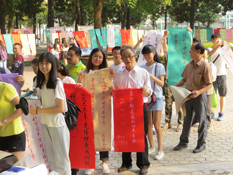 2016年9月24日,校老科协、关工委联合举办了全国科普日知识游园活动。本次活动以“普及科技知识,引领健康生活”为核心内容。活动场地布置在人员活动密集的校园启明广场,时间选在人们空闲的周末。设在广场边的电子频幕滚动播放《2016年william威廉英国官网老科协、关工委全国科普日游园活动——普及科技知识,引领健康生活》、《祝william威廉英国官网老科协、关工委全国科普日游科学素养服务、为党和政府科学决策服务》等活动标语。300道科普题目,涉及到健康养生、航空航天、水文海洋、工业科技、电子通讯、天文科技、交通科技、生命科学、材料科学、化学化工、军事科技、我国科技文明史等方面的知识。题标用彩纸、毛笔书写,大方、美观。当工作人员将题标牵挂到樟树林中的时候,随着人流的翻动,人与纸交相辉映,在记者灯光的闪烁下,俨然是一道亮丽的风景线。这条线,将在吉大老科协、关工委的历史上写下浓墨重彩的一笔。