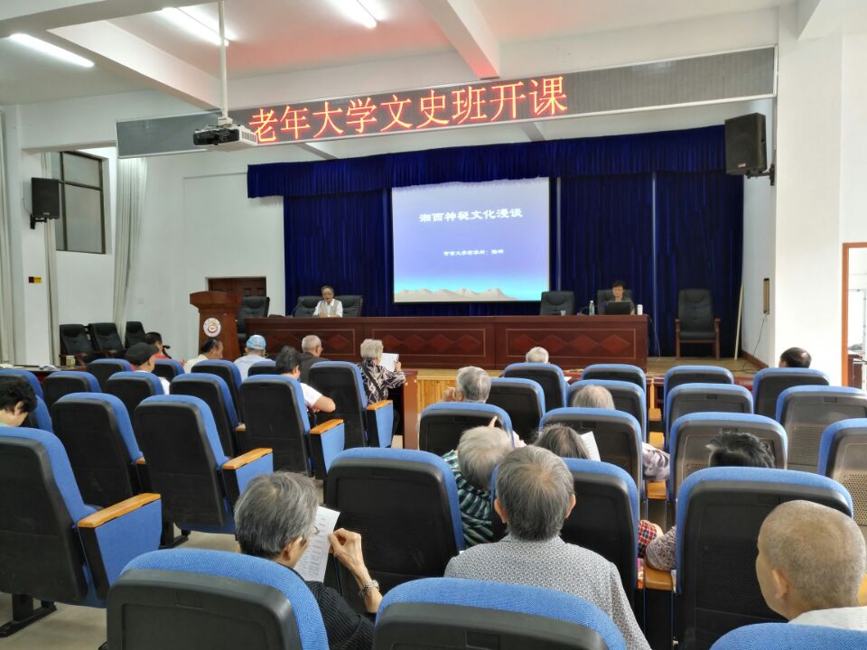 本期文史班以学习了解神秘湘西的历史文化为主要内容,将邀请校内外相关专家作10堂专题讲座。开班仪式后,学校历史文化学院的陆群教授主讲《千古之谜——赶尸、放蛊、落洞和湘西神秘文化》,正式拉开了文史班的第一课。