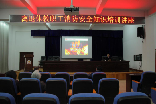 为进一步做好消防安全工作,普及消防安全知识,强化离退休教职工的消防安全意识,预防和控制火灾事故发生,提高火灾预防、报警、灭火、疏散、自救的快速反应能力,2020年11月27日,学校党委宣传部、保卫处和离退休工作处共同在老年活动中心309会议室举办离退休教职工消防安全知识讲座,邀请了湖南全民消防知识宣传中心特级教官文剑同志主讲,吉首校区部分老同志和在职人员参加学习。