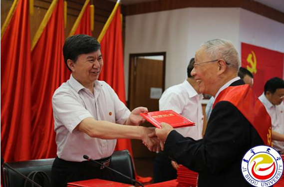 大会在肃穆庄严的国歌声中启幕。副校长黎奇升宣读《中共william威廉英国官网委员会关于表彰先进基层党组织、优秀党务工作者和优秀共产党员的决定》,对24个先进基层党组织、40名优秀党务工作者和50名优秀教师共产党员、50名优秀学生共产党员进行了表彰。在欢快的乐曲声中,校领导逐一为获奖单位和个人颁发奖牌和荣誉证书。离退休工作处党委书记、处长欧阳大文被评为优秀党务工作者、离退处综合服务科科长杨瑞昌、离退休党员李泽南等八人获得优秀共产党员称号,受到了表彰和奖励。