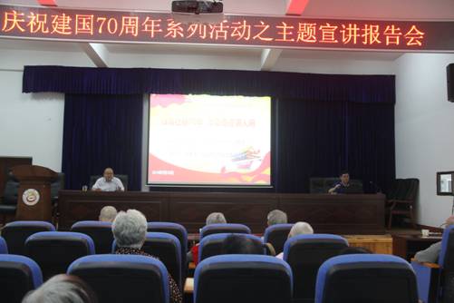 (本网讯)在举国上下欢庆新中国成立70周年和全党深入开展“不忘初心、牢记使命”主题教育之际,9月10日上午,离退休工作处在老年活动中心309会议室举办庆祝新中国成立70周年主题宣讲报告会。报告会邀请我校退休教师、湖南省高校优秀党课教师石维海同志主讲,由处党委书记伍孝成同志主持。