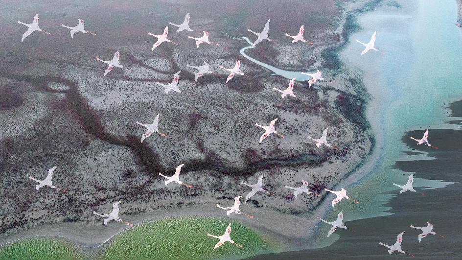 图为作品《翩迁火烈鸟》