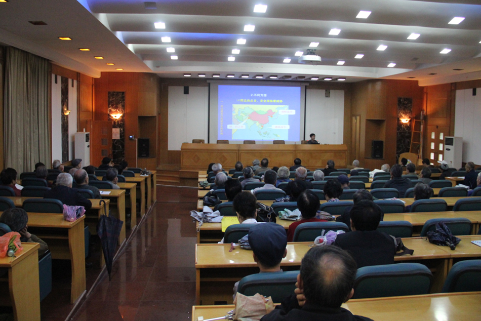 为了满足离退休工作处老同志们对于国防、军事方面知识的需求,增强老同志们的国防意识,5月10日上午,离退休工作处特邀知名军事专家、教育部国防教育指导委员会委员、我校军事教研室主任李先德教授在图书馆学术报告厅做了一场题为《中国周边安全环境》的讲座。讲座由离退休工作处处长吴志祥主持。