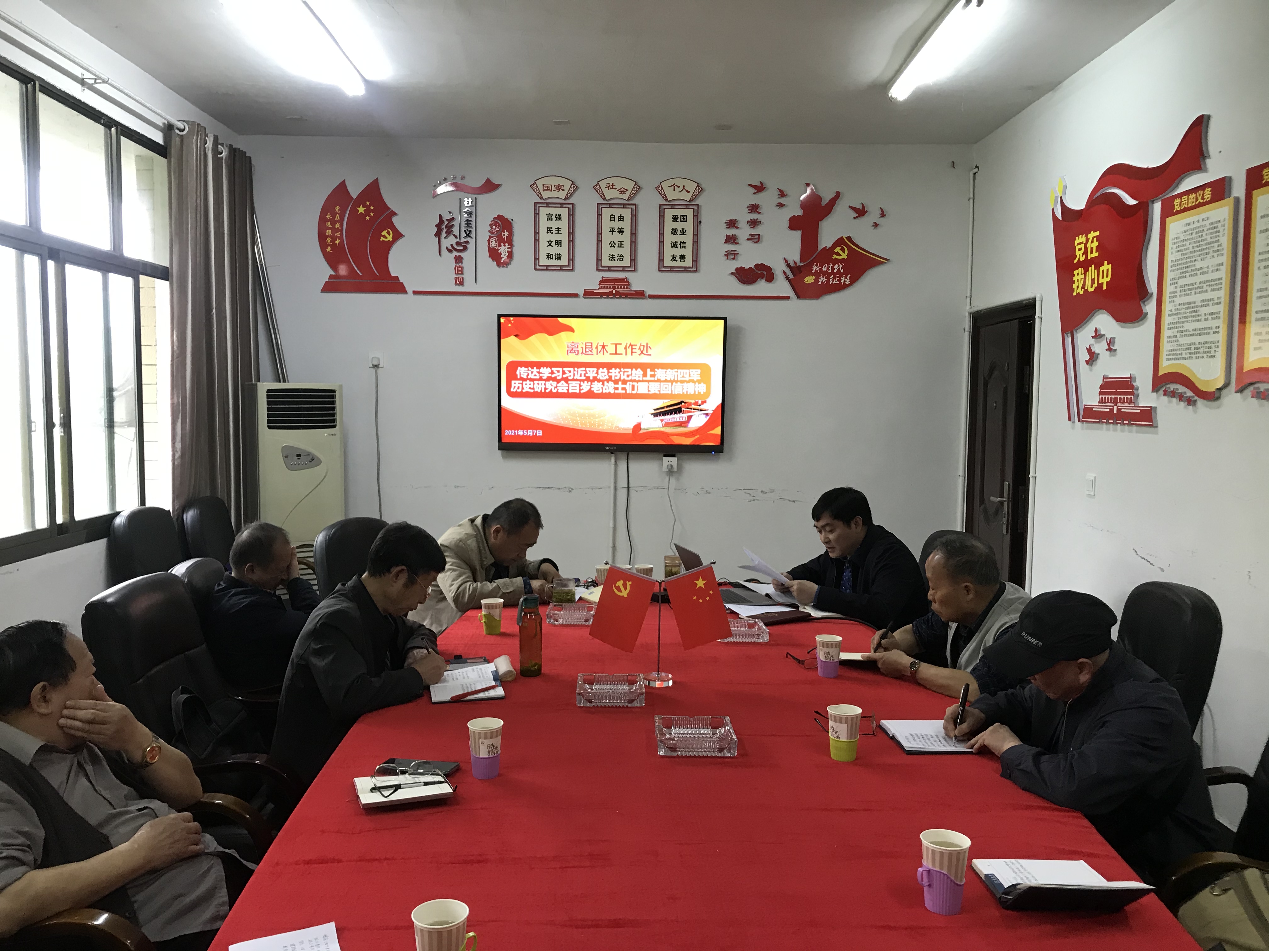 本网讯(离退休工作处)5月7日,离退休工作处党委在老年活动中心召开会议,集中专题学习习近平《论中国共产党历史》等内容。处党委委员、各支部书记和在职党员参加学习,处党委书记伍孝成同志主持会议。
