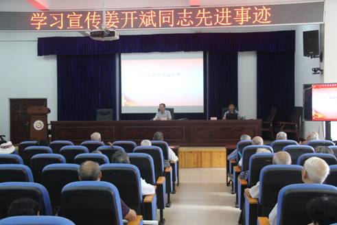 会上,欧阳处长传达了中共湖南省委老干部局下发的《关于开展向姜开斌同志学习活动的通知》文件精神,带领全体离退休党员同志及工作人员集中学习了姜开斌同志在“温比亚”台风中抢救国家重点试验平台而壮烈牺牲的先进事迹。