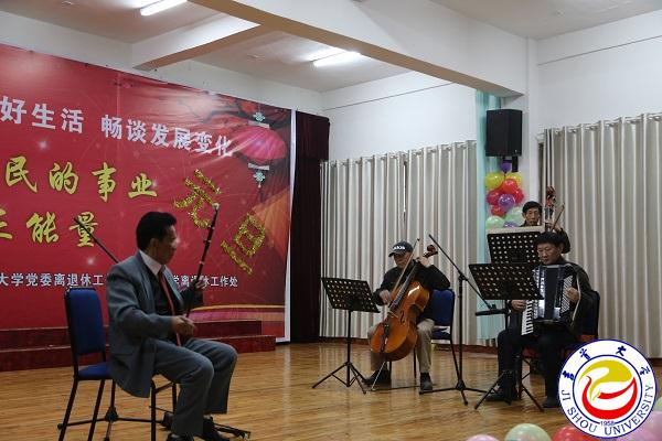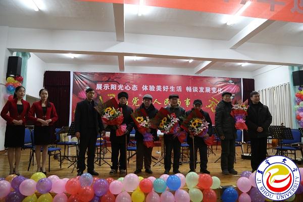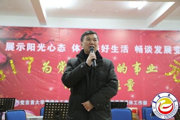 离退休工作处党委书记、处长欧阳大文在会上致辞。他说,此次联欢会是我校首次举行的离退休老师新年联欢会。学校党委行政历来重视离退休工作,为进一步加强党的建设和离退休工作,将离退休党总支调整为离退休党委,并成立了党委离退休工作部。在这辞旧迎新的时刻,他代表离退处对领导们的到来表示衷心的感谢。并希望老同志继续展示阳光心态,体验美好生活,畅谈发展变化,为党和人民的事业增添正能量。