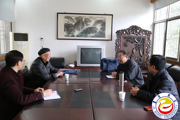 本网讯(记者翁凯)12月28日上午,省人社厅专家服务中心主任张跃雄来校看望慰问退休老教授石泽亮老师。在砂子坳校区凤凰楼一会议室,张跃雄与石老亲切交流,详细了解他的身体状况和生活情况,并送上了慰问金。人事处、离退处负责人陪同慰问。
