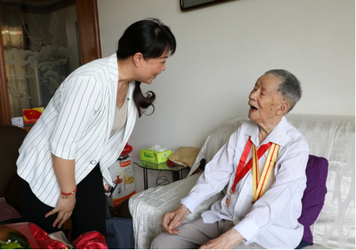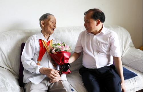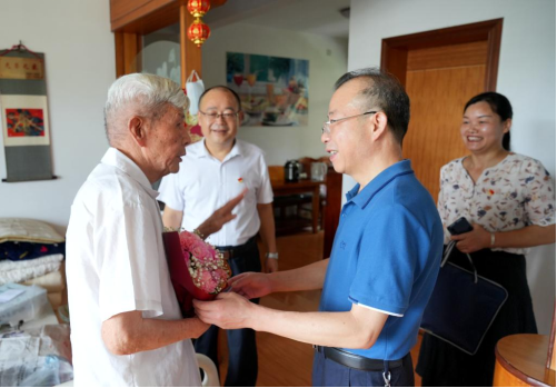 座谈会后,廖志坤、王艳一行来到今年95岁高龄的老同志耿同增家中慰问,为他送上鲜花和慰问金,询问其身体状况和家庭情况,嘱咐他们保重身体。黎奇升一行看望慰问了离休老党员代表、88岁高龄的游祖智和困难党员代表庹万明老师,为他们送上节日的祝福和慰问金,感谢他们多年来为党和国家以及学校所做的贡献。