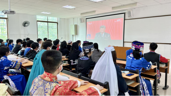 文学与新闻传播学院2021级定向师范生吴俊霞表示:习近平同志在党的二十大报告中指出,在新征程上,我们要继续不忘初心,牢记使命。我作为一名新时代的大学生,作为一名苗族女孩,作为一名定向培养师范生,更要在接下来的大学生活里努力学好专业知识,肩护传承使命,弘扬传统文化。我也立志毕业后回到家乡基层工作,为乡村教育事业贡献自己的一份力量。