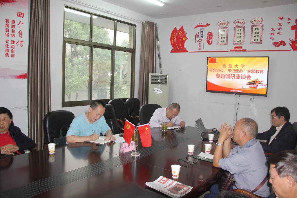 (离退休工作处)10月11日上午,学校党委委员、副校长钟海平到学校老年活动中心301会议室,开展“不忘初心、牢记使命”主题教育工作调研座谈会。离退休工作处党委委员、支部书记及部分离退休教职工代表参加座谈会。