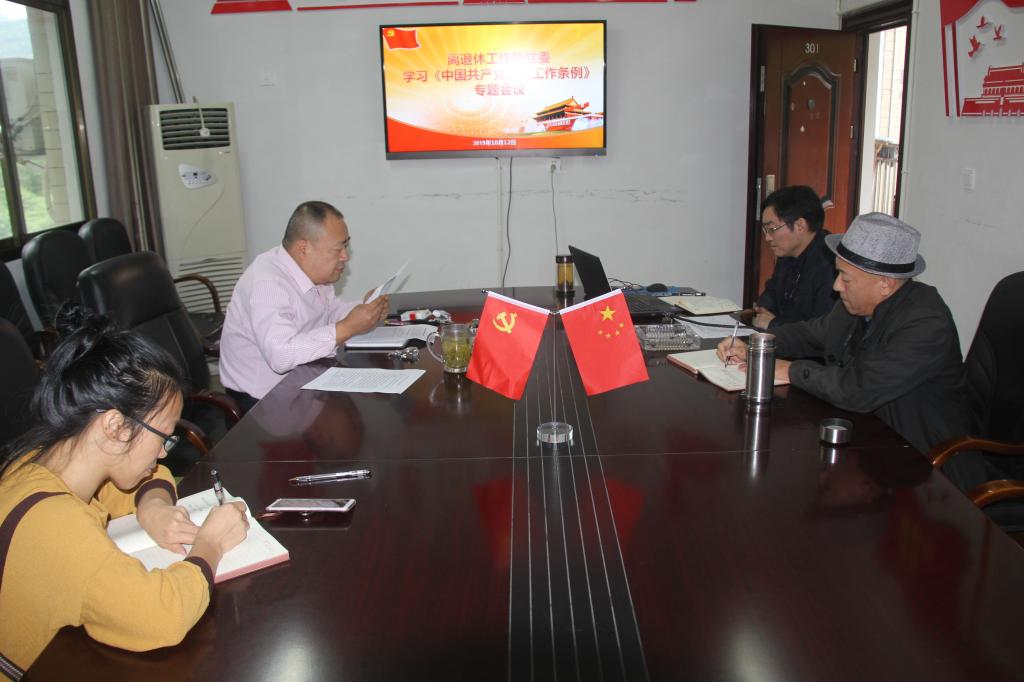 10月12日,离退休工作处党委组织班子成员和在职党员在老年活动中心301会议室专题学习《中国共产党宣传工作条例》。处党委书记伍孝成领学并讲话。