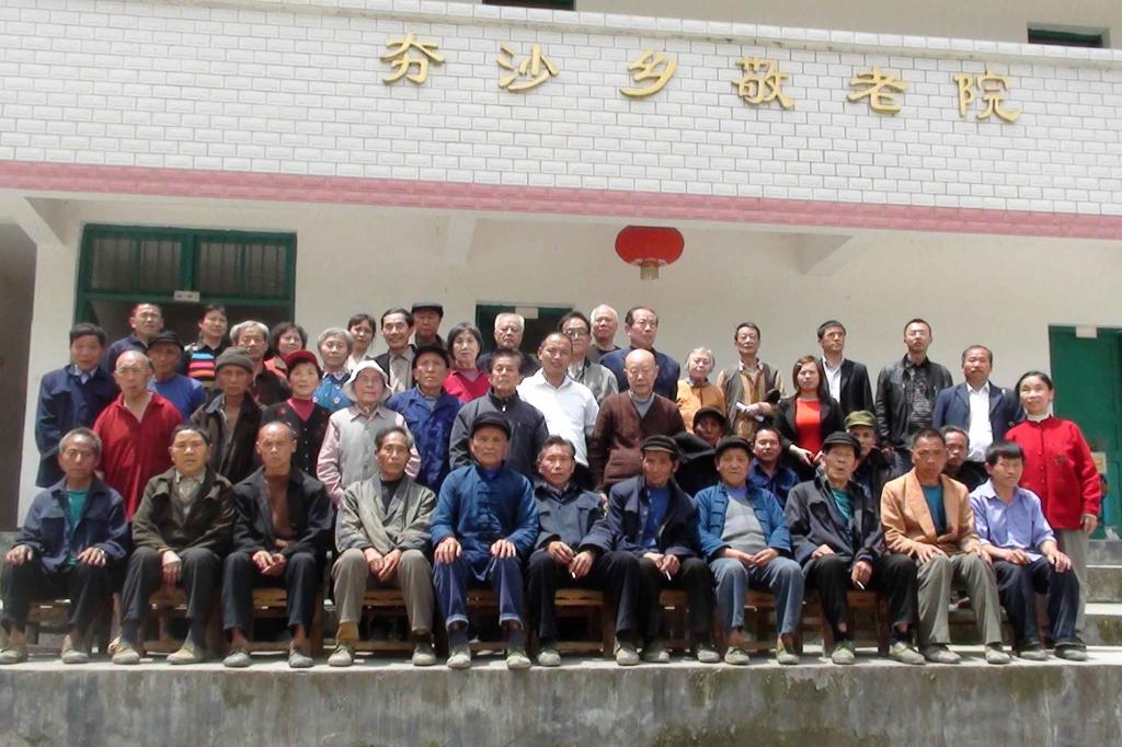 与当地敬老院老人合影