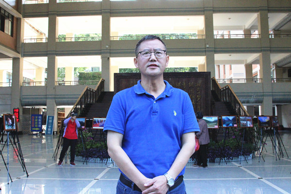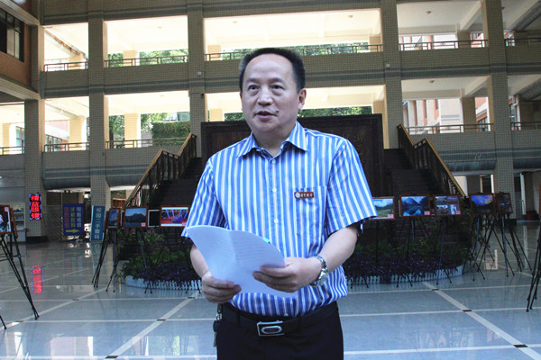 图为龙先琼副校长宣布摄影作品展开展 向中舰摄