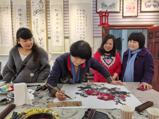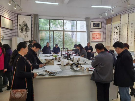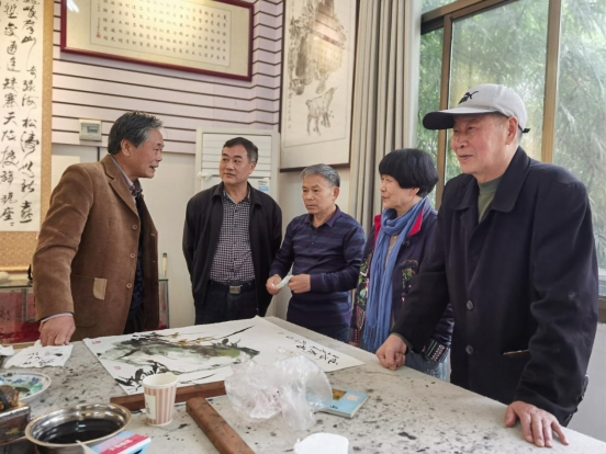 州老年书画家协会会长李成凤老师,副会长兼秘书长张光琳老师,副会长阙艳萍老师,湖南省工艺美术师田光老师,湖南省著名工艺美术师田大年老师,著名工艺美术师、山水画大师饶坤老师,原州博物馆副馆长、湘西州水冲石石砚工艺製作传人杨光三老师,原州博物馆著名花鸟画家刘莉老师,湖南省著名紫藤、人物画家周小涛老师等州内著名书法、绘画老师一行二十余人应邀参会。我校老年书画协会佘明辉、马根生等老同志参与交流。老年大学校长尚本业和离退处工作人员全程参与笔会并做好服务工作。