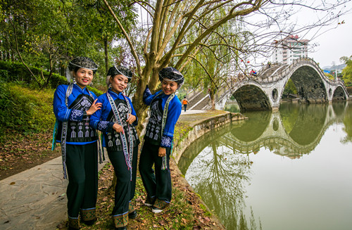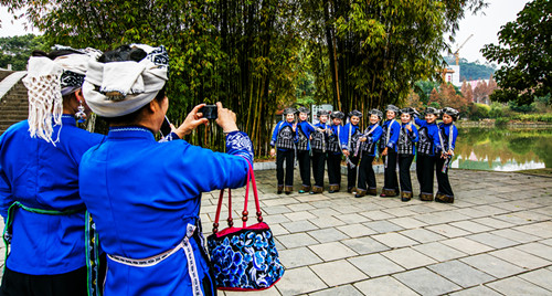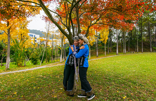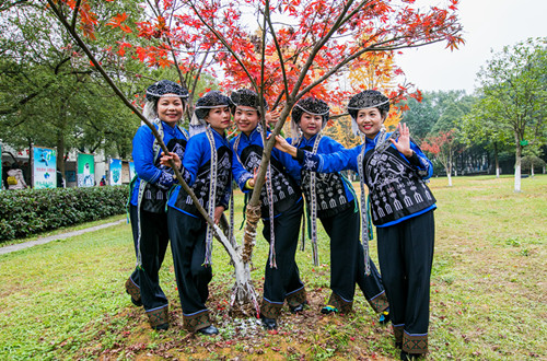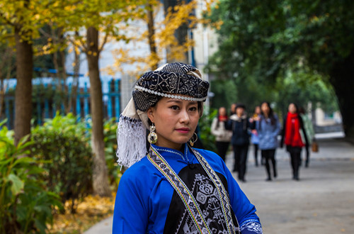 苗家姑娘逛校园