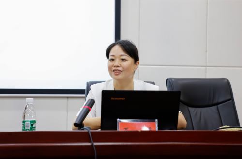 图为校党委委员、副校长、工会主席王艳作专题培训